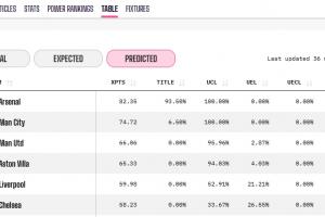 还是很稳?阿森纳爆冷输球后夺冠概率仍有93.5%,下降4.1个百分点