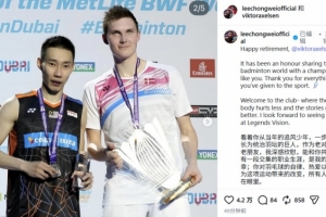 安赛龙因伤退役!李宗伟祝福:退役快乐!恭喜你完成了辉煌的征途