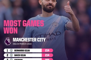 体育资讯4月20日讯 英超第33轮比赛,曼城在伊蒂哈德球场以2-1的比分力克领头羊阿森纳。本场比赛之后,贝尔纳多·席尔瓦为曼城征战英超的胜场数达到214场,追平了另外一位球队传递大卫·席尔瓦,并列队史榜首。