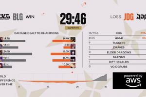 体育资讯03月22日讯 全球先锋赛半决赛,BLG 2:0 JDG。