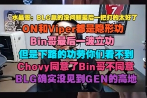 水晶哥:BLG赢的没问题最后一把打的太好了,ON和Viper都是隐形功,Bin哥最后一波立功,但是下路的功劳你们看不到,Chovy同意了Bin哥不同意。