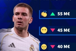 体育资讯3月16日讯 德转即将更新西甲球员身价,并预热皇马球员马斯坦托诺身价将会发生变化。
