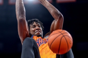 怀特塞德半场出战15分18秒,9投4中、罚球2中2,揽下10分18篮板(6前板)2盖帽,正负值高达+18!