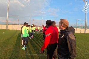 曼城前锋塞梅尼奥来到加纳国家队报到,队友们列成两排,以拍打的方式对他表示祝贺。