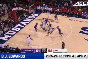 下一篇: 模板杰森·肯特!南卫理公会大学大四后卫BJ·爱德华兹集锦